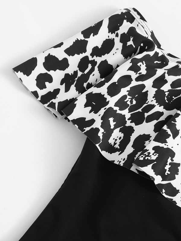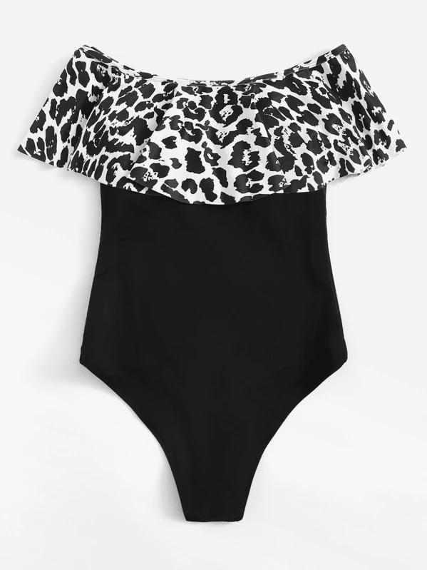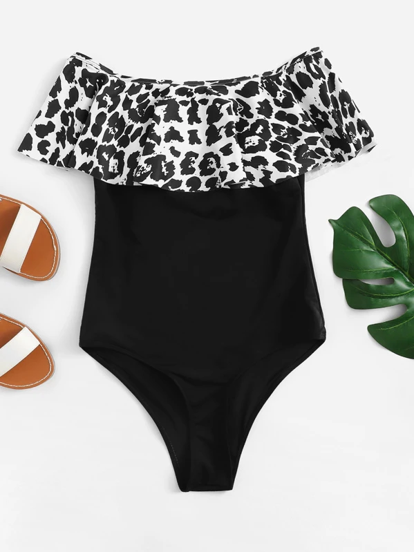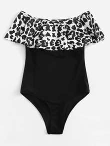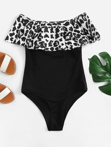 Leopard Flounce Bardot One Piece Swimsuit