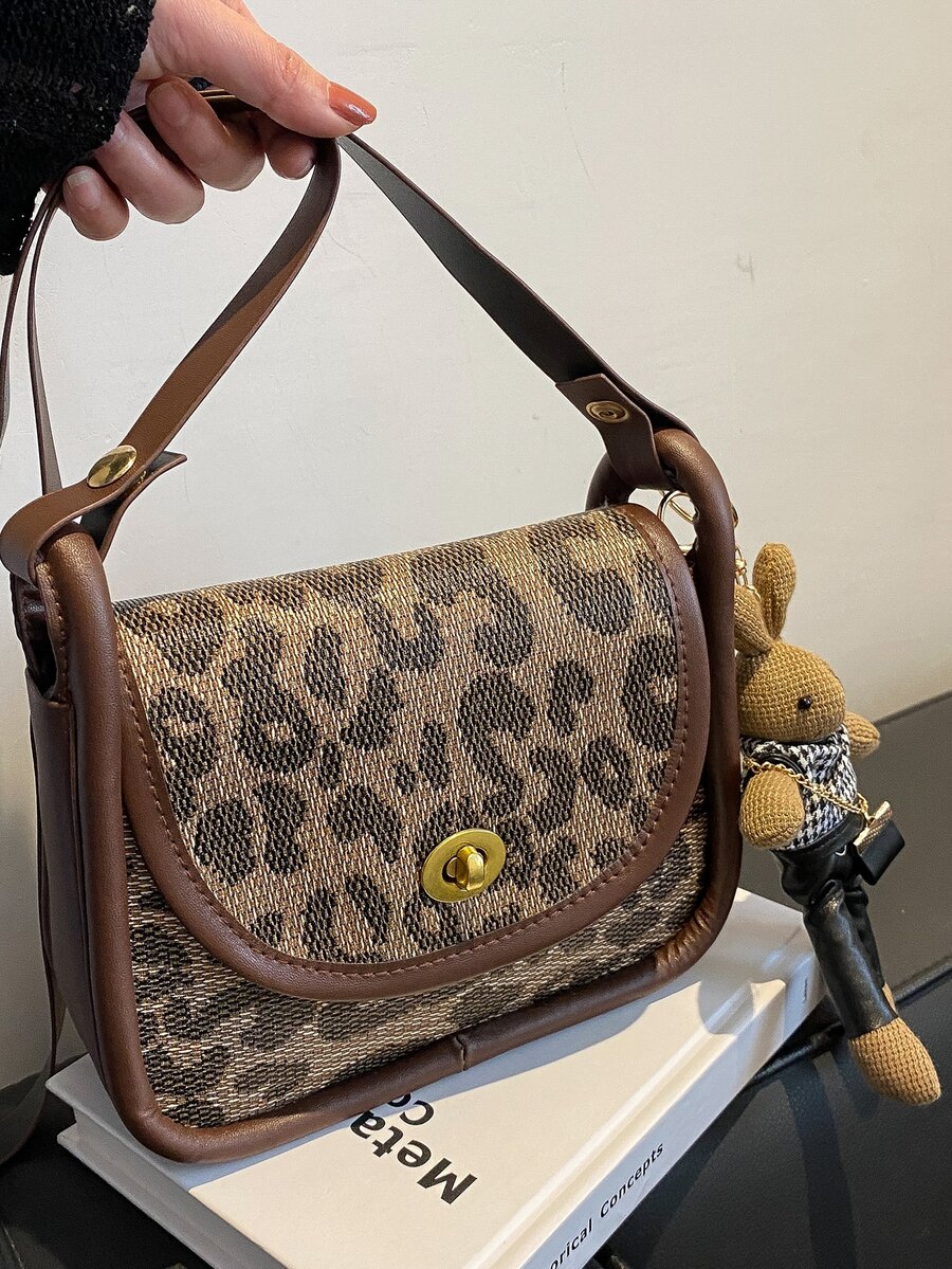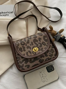 Leopard Graphic Twist Lock Square Bag