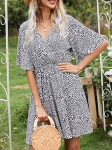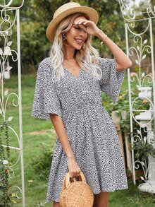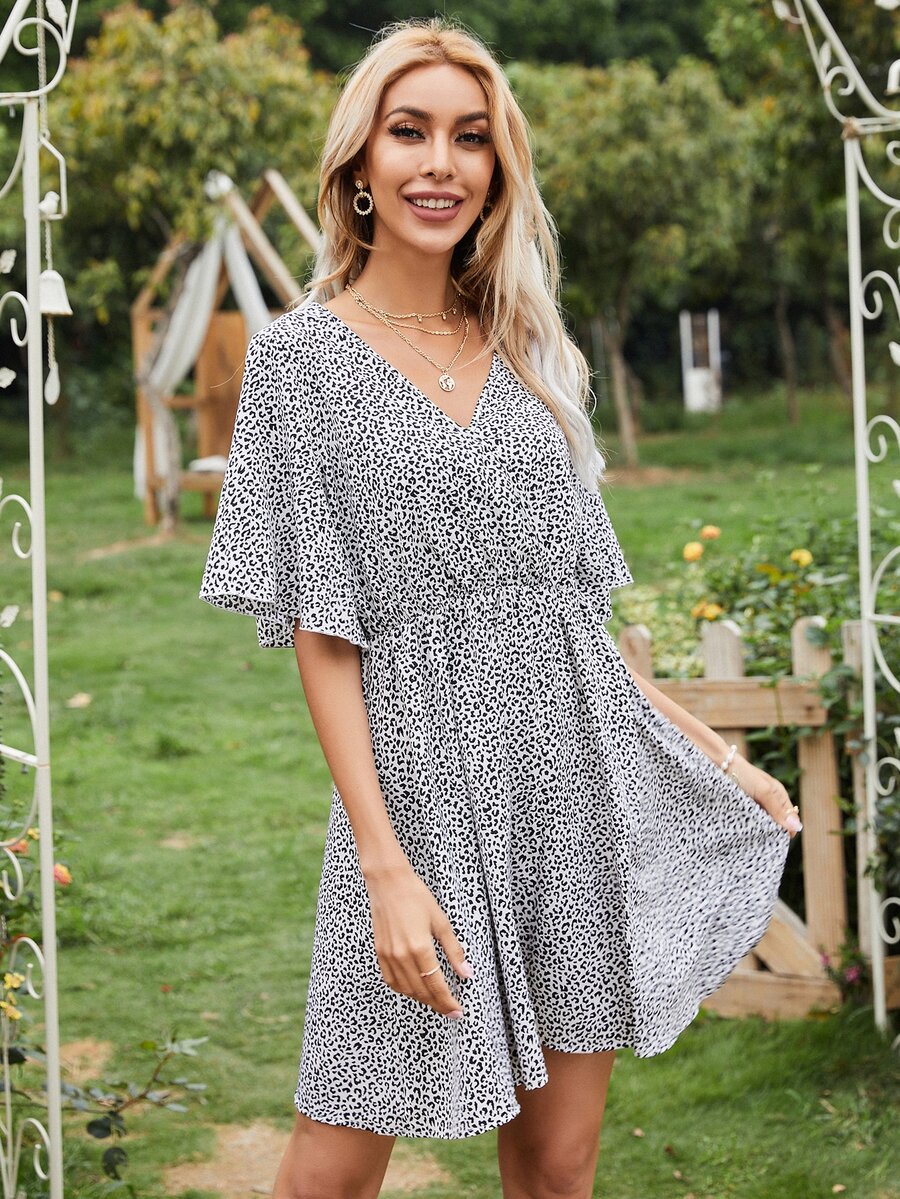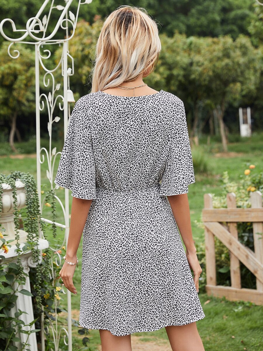 Leopard Print Butterfly Sleeve A-line Dress