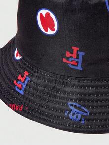 Paul Frank X ROMWE Letter & Cartoon Pattern Reversible Black Bucket Hat