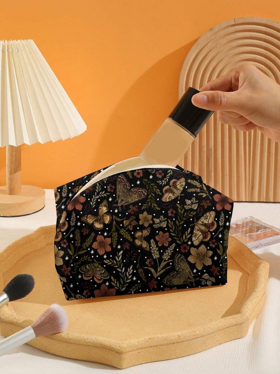 Letter And Cartoon Pattern Quilted Makeup Bag, Portable Makeup Storage Bag With Zipper, Multifunctional Storage Bag, Lightweight Travel Bag, Suitable For Men And Women