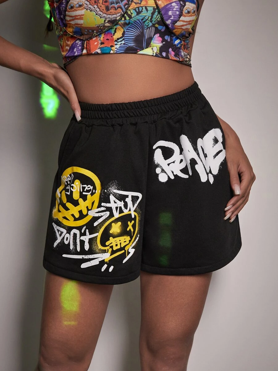 Letter Cartoon Graphic Track Shorts