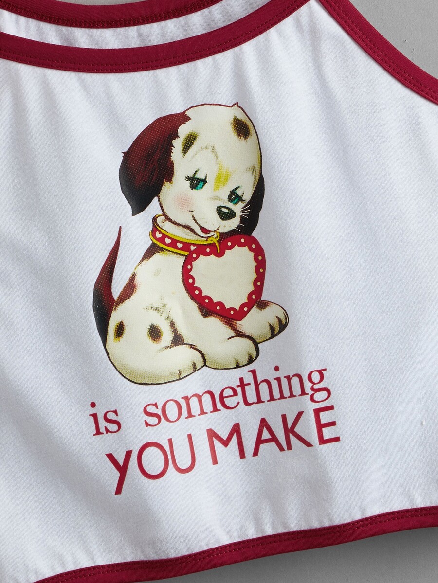 Letter Dog Graphic Ringer Crop Cami