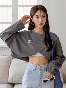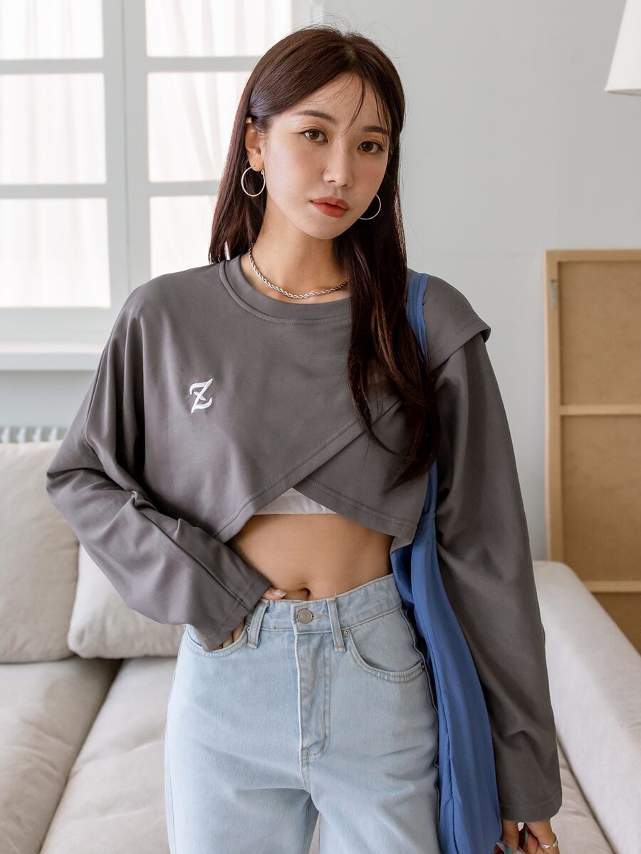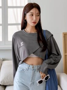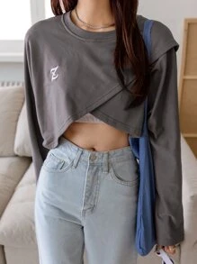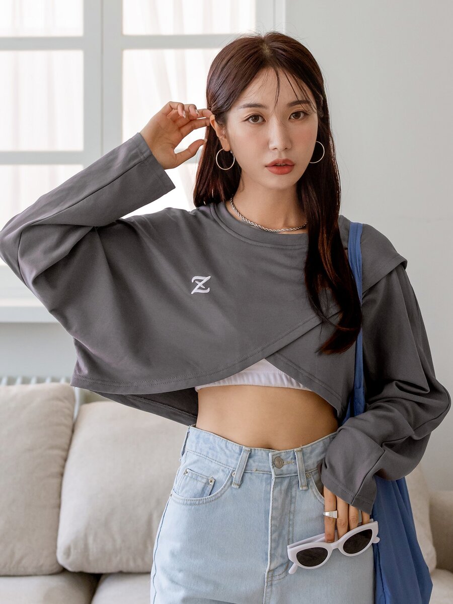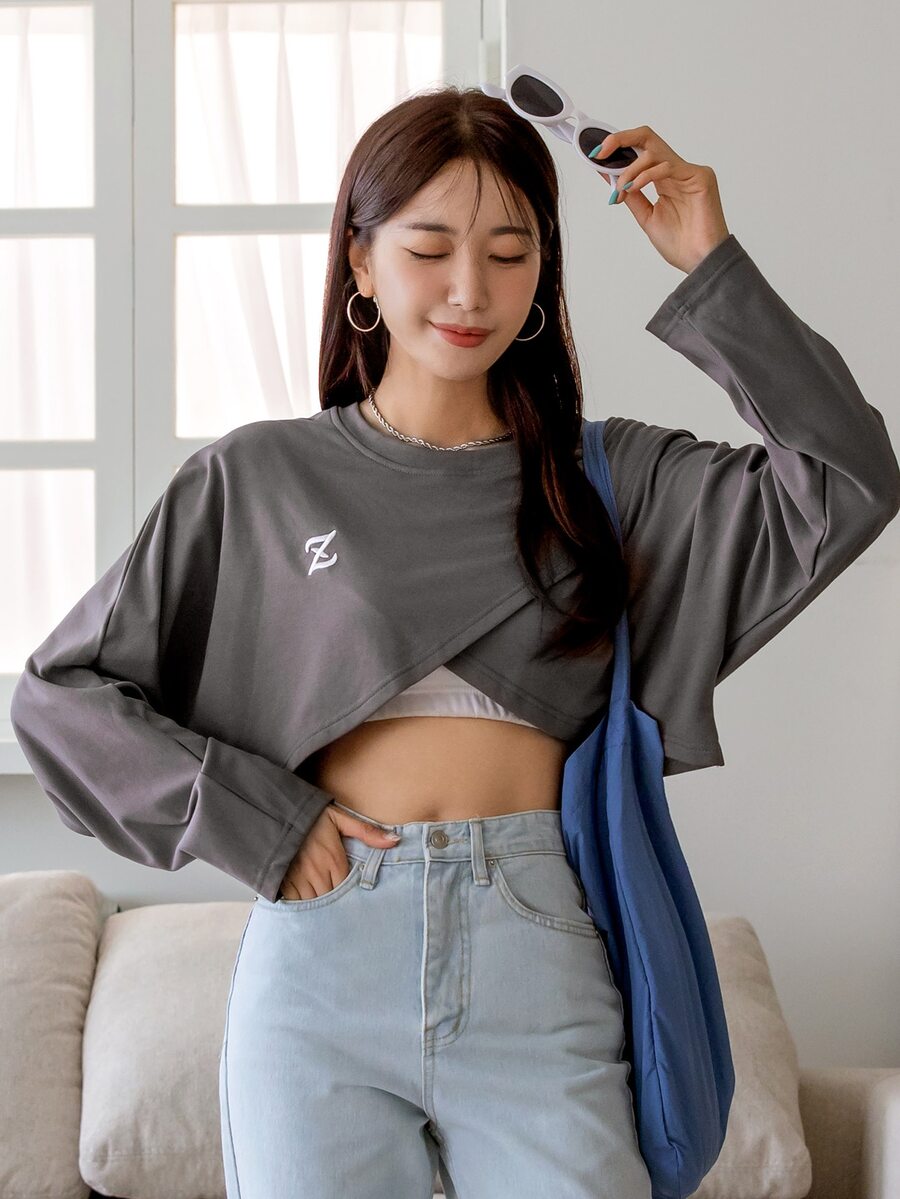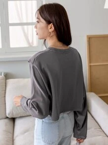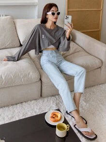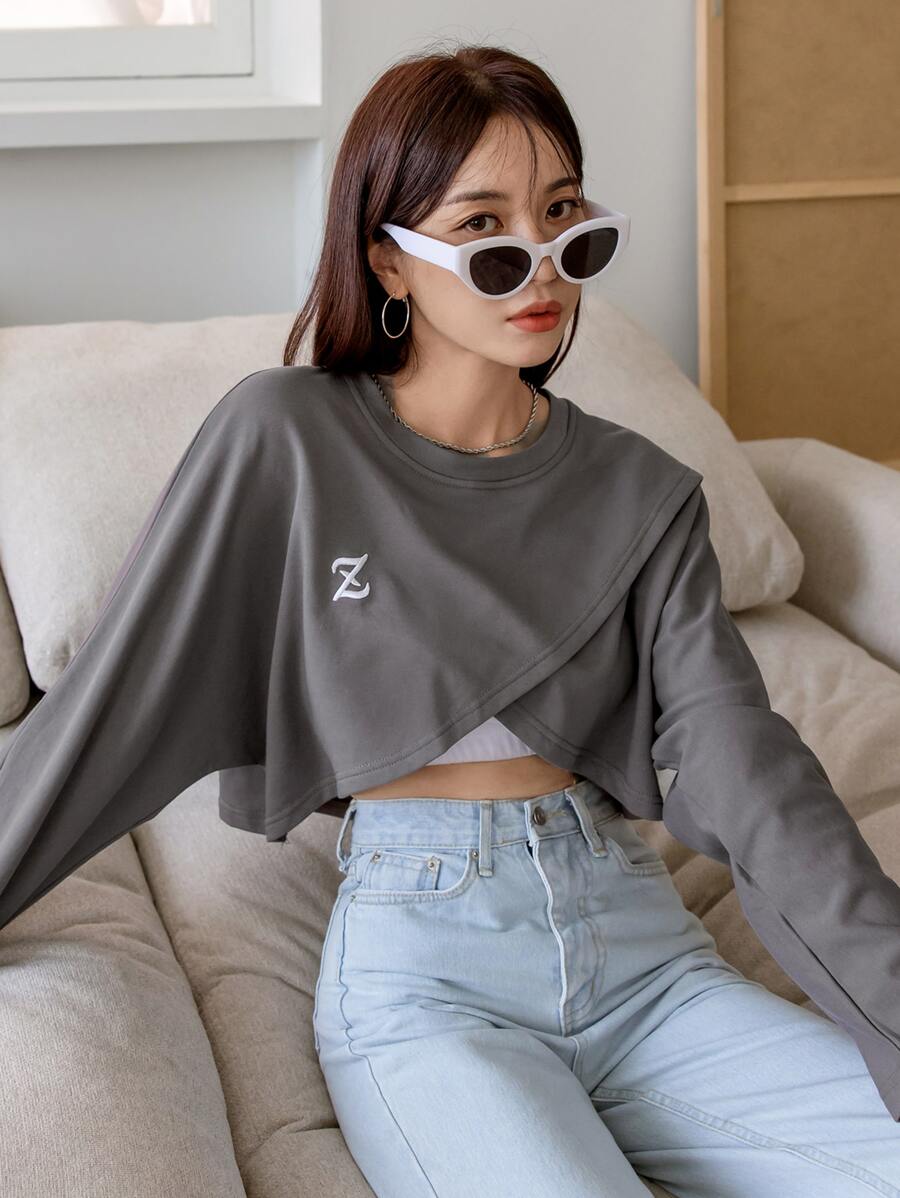 Letter Embroidery Batwing Sleeve Tee