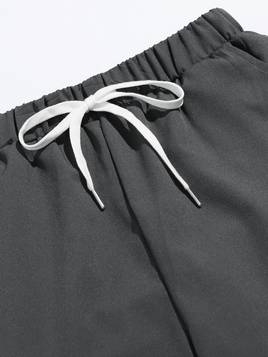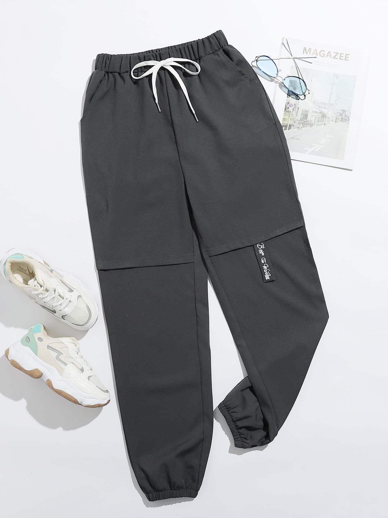 Letter Embroidery Drawstring Waist Carrot Pants