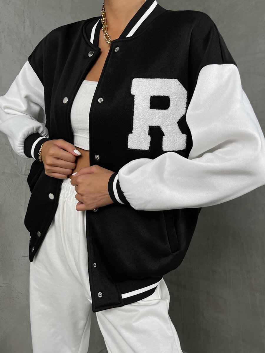 Letter Embroidery Drop Shoulder Colorblock Varsity Jacket Fall Winter Cloth For Women