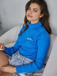 Letter Graphic High Neck Sweater