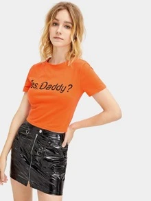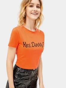 Letter Print Crop Tee