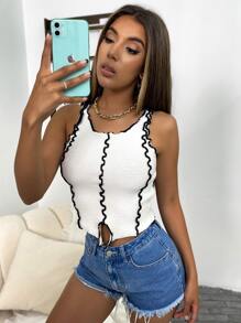 Lettuce Trim Slit Hem Rib-knit Crop Top
