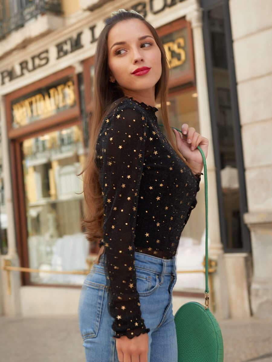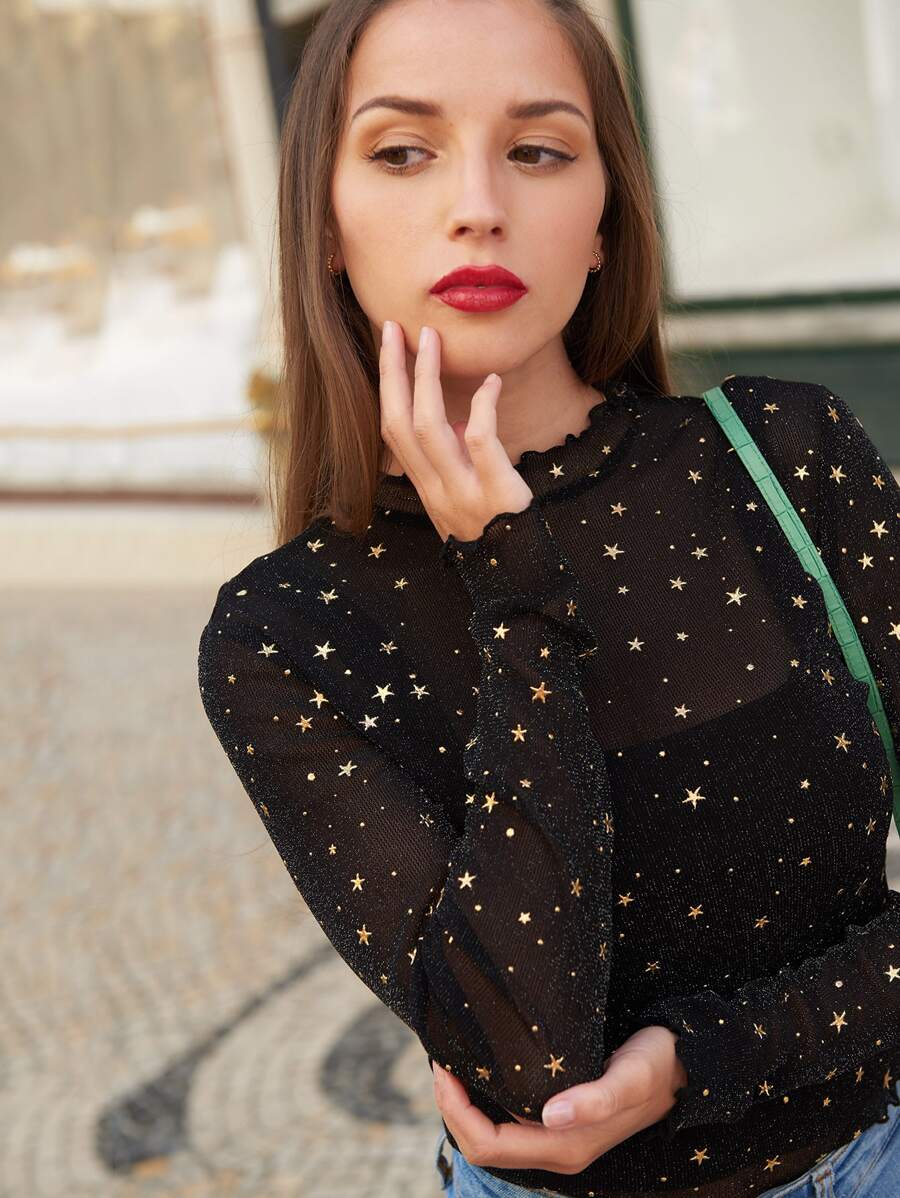 Lettuce Trim Star Mesh Top, Blingbling Bottoming Tee