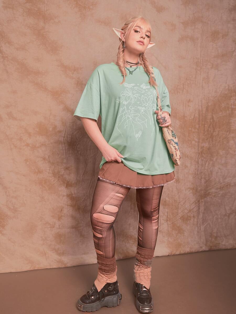 LineHome Plus Butterfly Print Drop Shoulder Tee