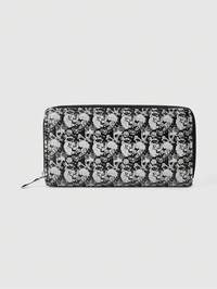 Grunge Punk Skull Head With Flower Black Base Grey Shadow Long Wallet