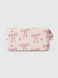 Grunge Punk Bow Grid Style Long Wallet, Cute And Versatile
