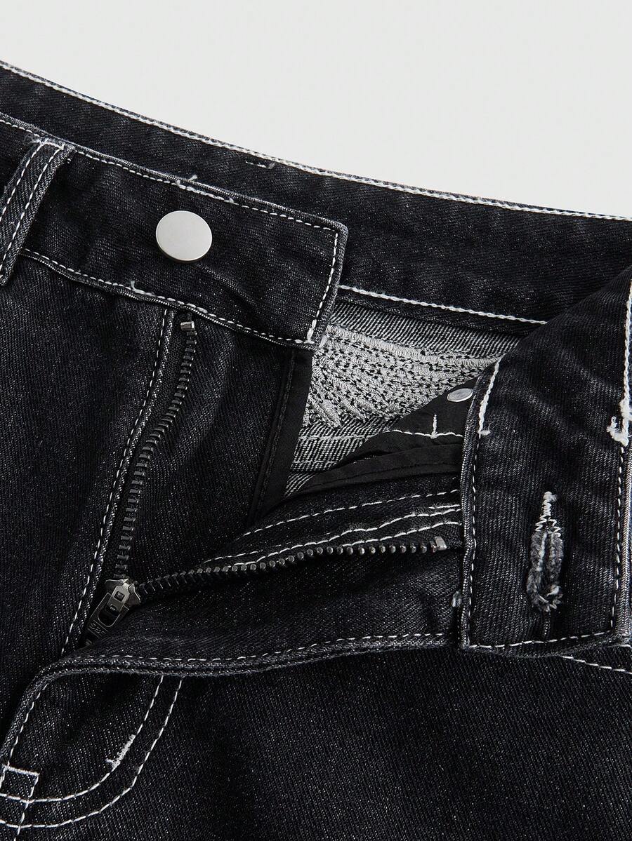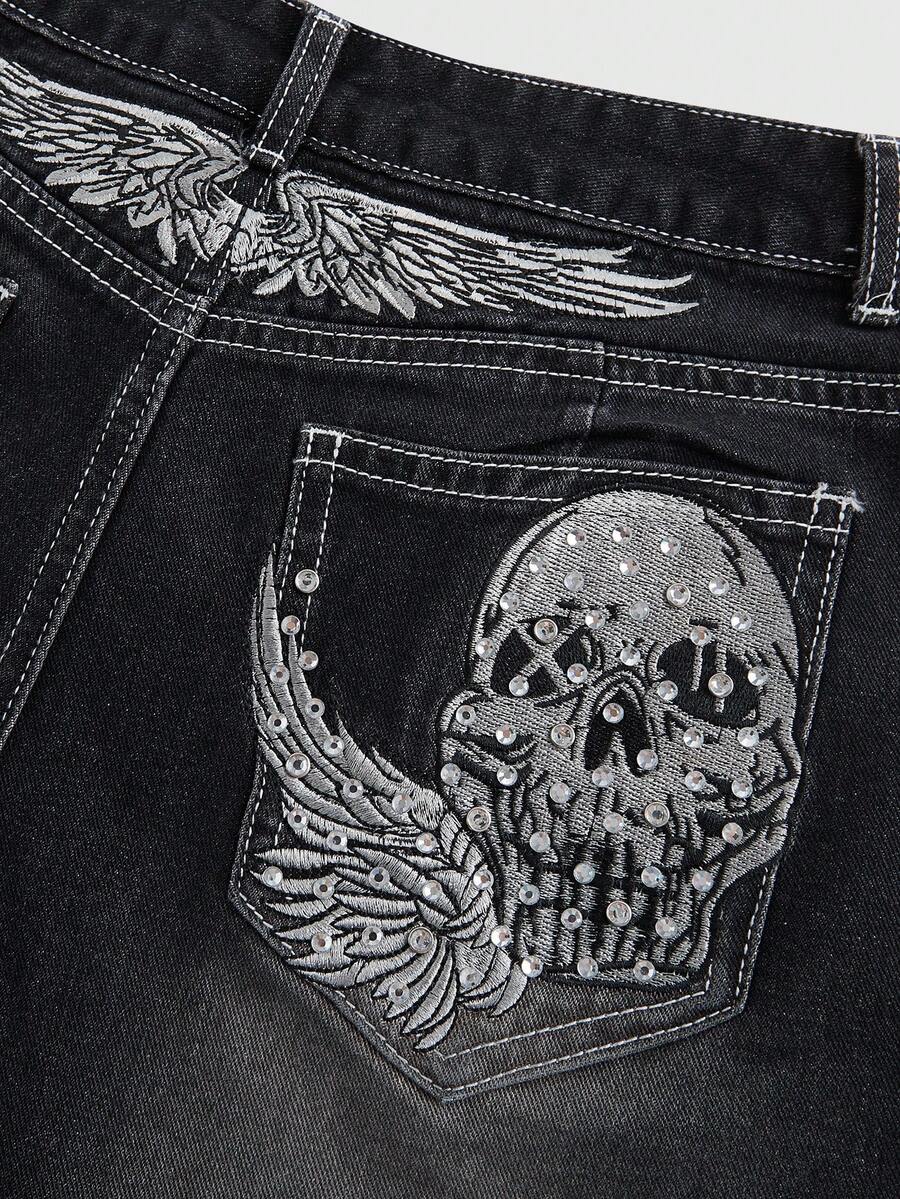 Grunge Punk Loose-Fitting Vintage Washed Denim Shorts With Punk Street Style Embroidered Skull & Wings, School