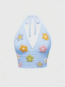 Lovely Vacation Style Crochet Floral Sleeveless Top