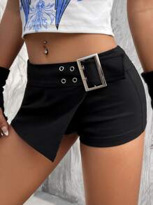 Low Rise Grommet Eyelet Buckle Detail Shorts