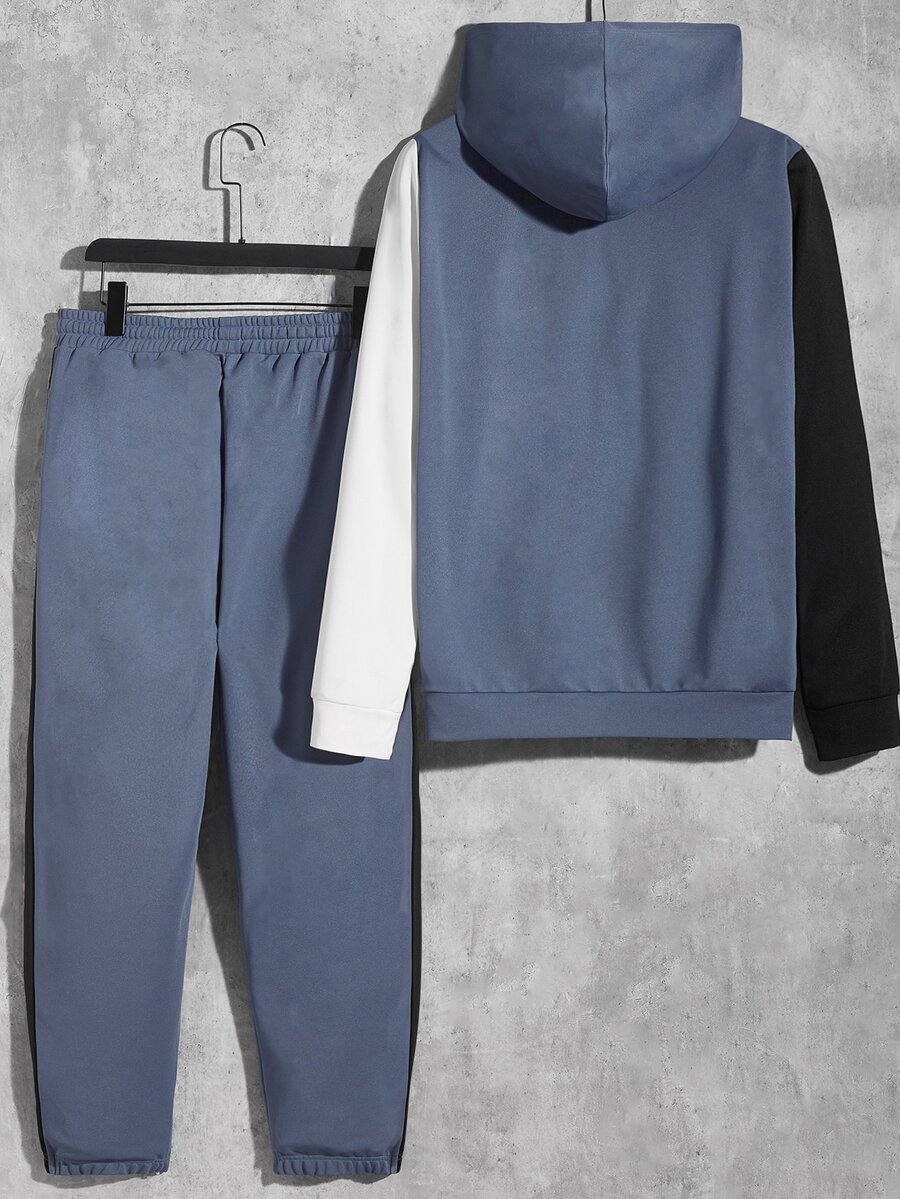 GENTILAND Guys Letter Graphic Colorblock Hoodie & Sweatpants