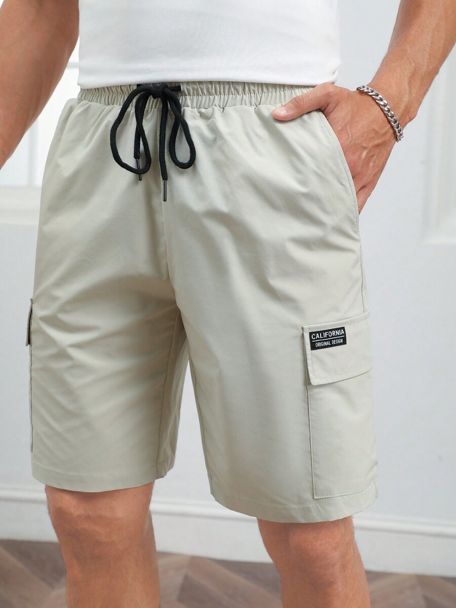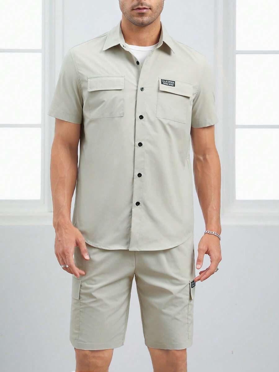 GENTILAND Guys Letter Patched Flap Pocket Shirt & Drawstring Waist Shorts