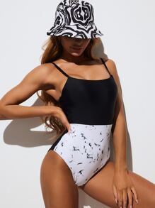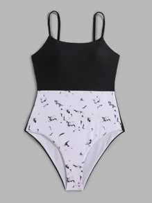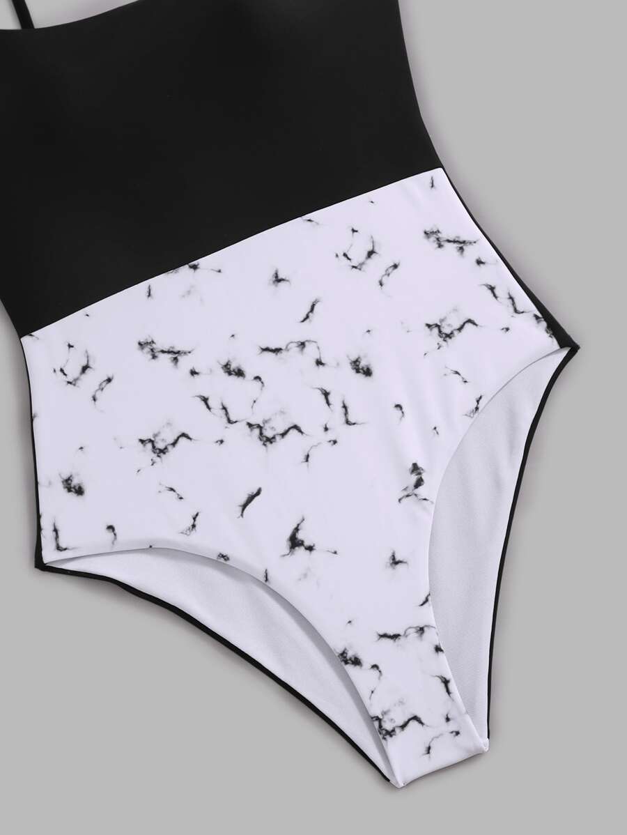 Marble Print One Piece Swimsuit