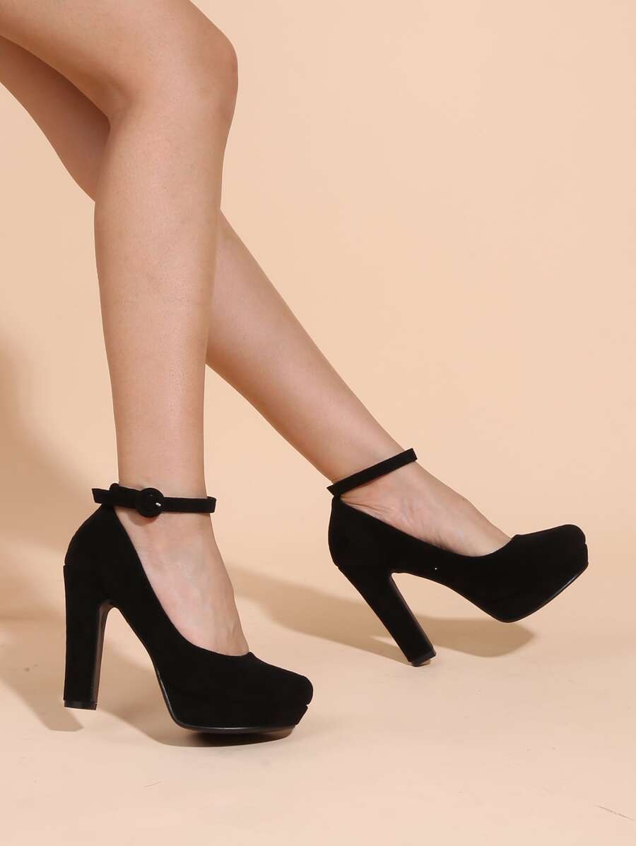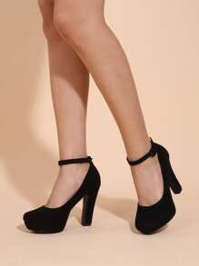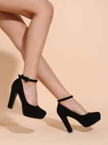 McKoine Minimalist Platform Ankle Strap Chunky Pumps