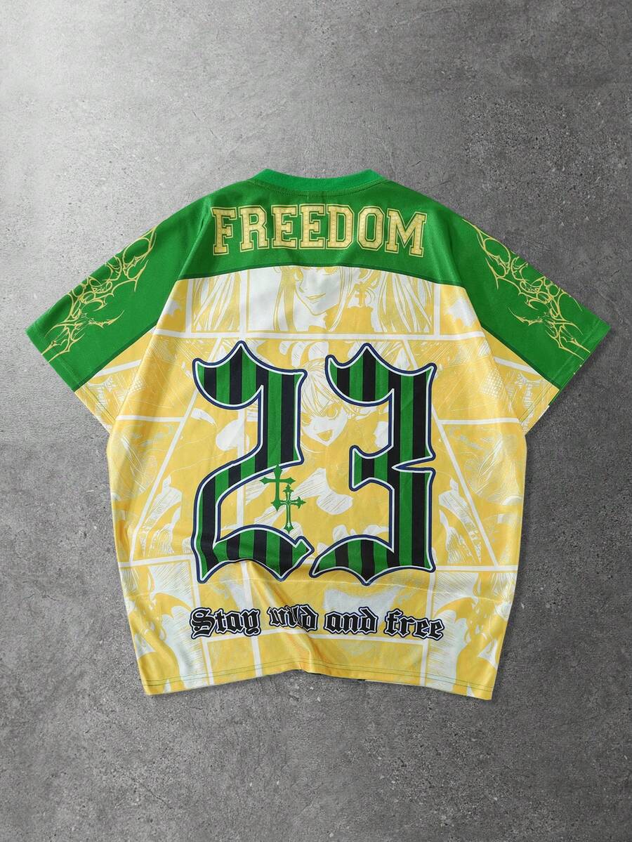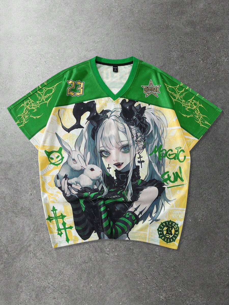 Men's Anime Print Short Sleeve T-Shirt, Suitable For Spring/Summer