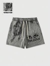 Men's Street Life Colorful Letter & Rhinestone Decor Drawstring Waist Shorts