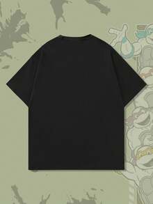 TEENAGE MUTANT NINJA TURTLES X ROMWE Men's Casual Comfortable Turtle Print Short Sleeve T-Shirt, Black, Autumn/Winter