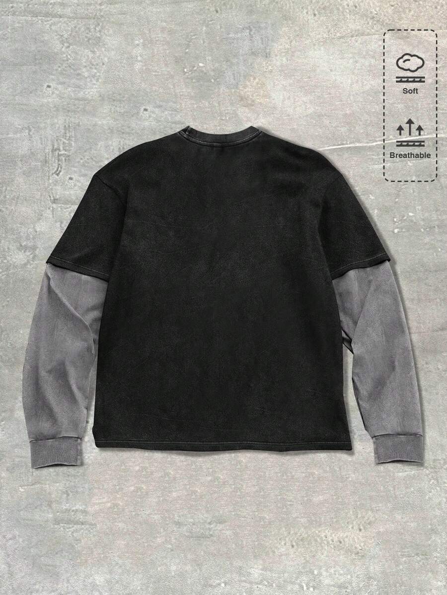 Men's Casual Contrast Color Patchwork T-Shirt, Autumn, Long Sleeve Top