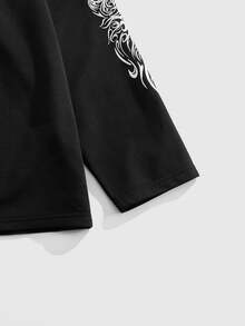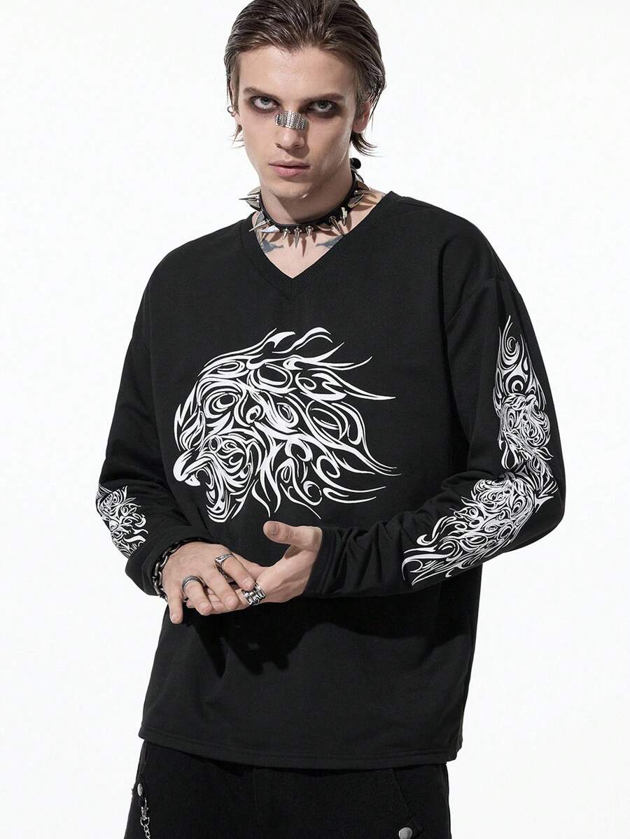 Goth Men's Casual Contrast Color Print Long Sleeve T-Shirt, Autumn, For Fall, 2000s Style