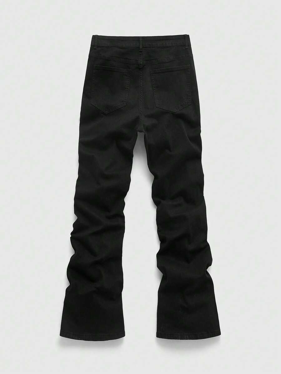 Casual Men's Fashion Street Rivet Decor Flared Leg Jeans, Suitable For Daily Commute