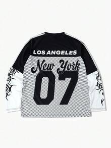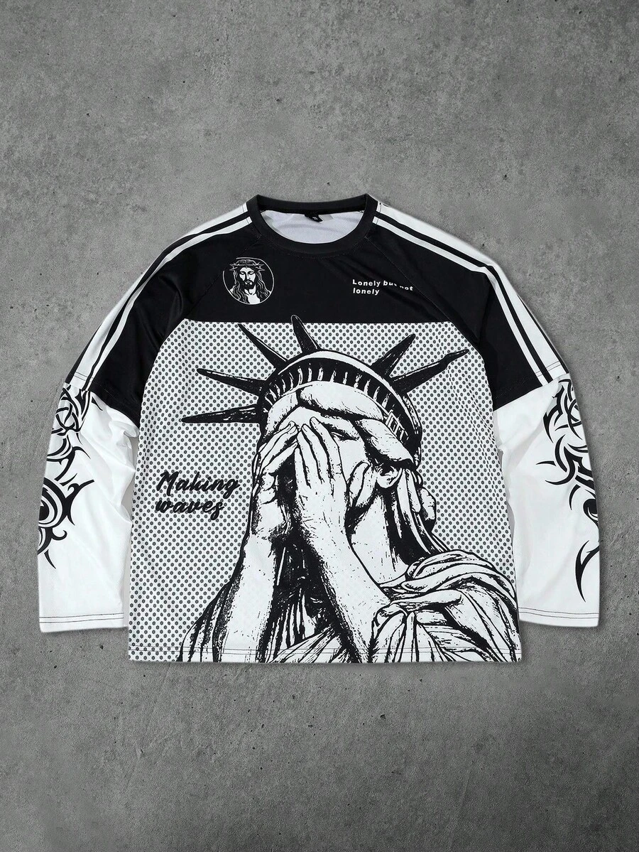 Street Life Men's Casual Fashion Street Statue Of Liberty & Striped Print Color Block 2 In 1 T-Shirt, Spring/Autumn