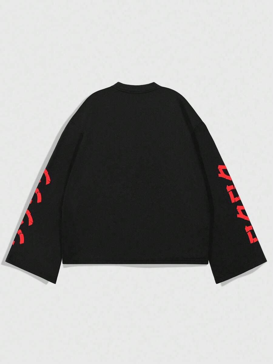 Street Life Men's Casual Letter Print Round Neck Loose Fit Long Sleeve T-Shirt, Autumn