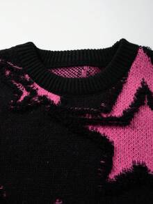 Street Life Men's Casual Loose Fit Pentagram Stars Pattern Round Neck Long Sleeve Sweater, Autumn/Winter, Grunge Style