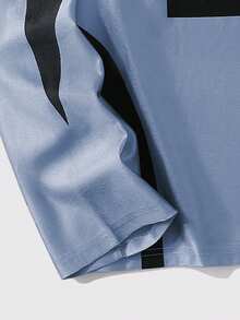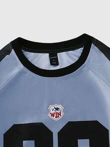 Prep Men's Casual Sports Contrast Color Patchwork Numeric Print Long Sleeve T-Shirt