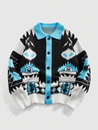 Street Life Men's Vintage Religious Portrait Print Jacket, Suitable For Autumn/Winter