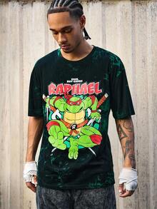 TEENAGE MUTANT NINJA TURTLES X ROMWE Men's Casual Tie-Dye Turtle Print Round Neck Short Sleeve T-Shirt, Summer