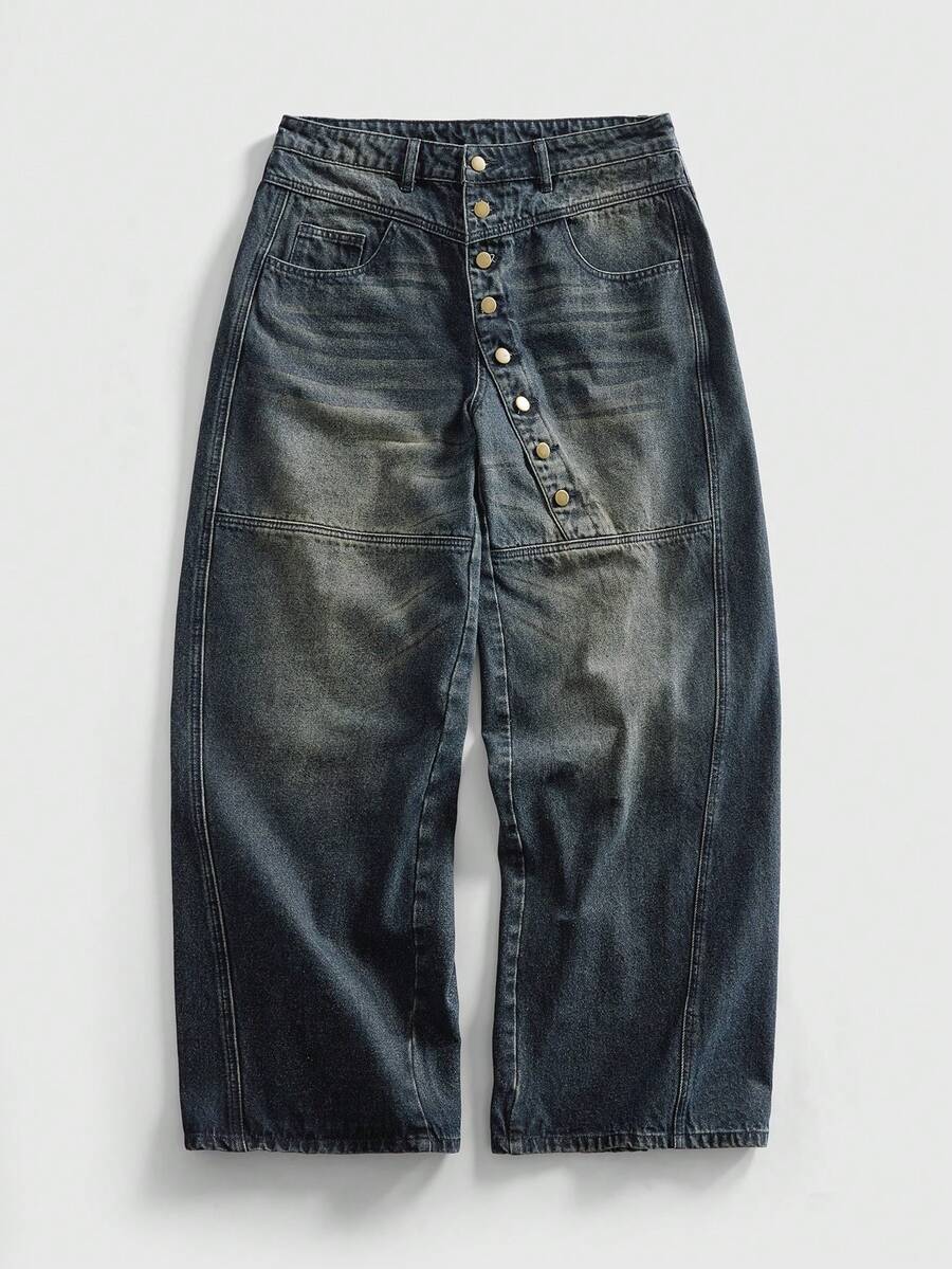 Street Life Men's Casual Washed Loose Wide-Leg Jeans