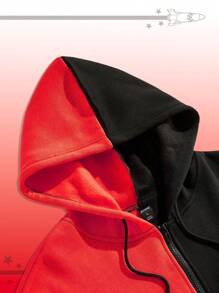 Astro Boy X ROMWE Men's Colorblock Cartoon Figure Graphic Zip-Up Hoodie