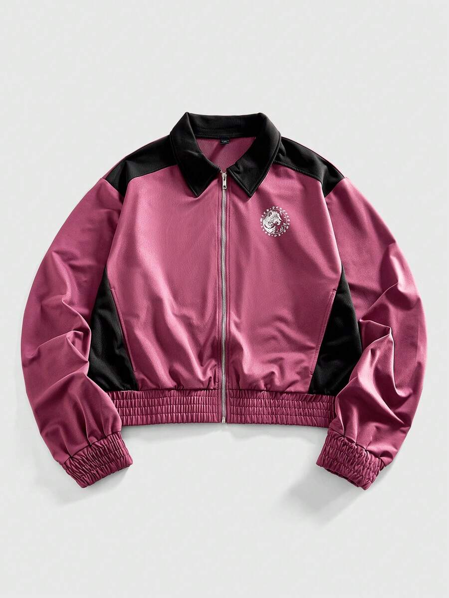 Grunge Punk Men's Colorblock Figure Print Zip-Up Hoodie