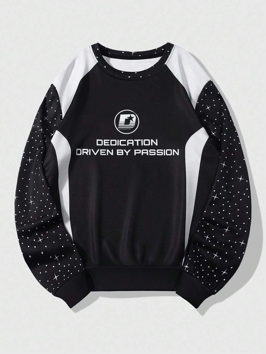 Street Life Men's Colorblock Letter Print Crew Neck Long Sleeve Pullover Sweatshirt