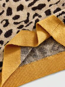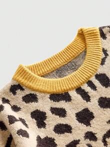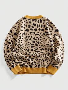 Street Life Men's Colorblock Round Neck Long Sleeve Casual Loose Knit Leopard Jacquard Sweater