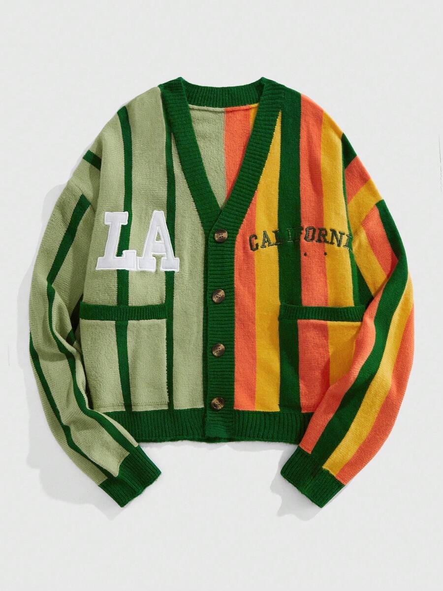 Prep Men's Colorful Striped Knit Sweater Cardigan, Retro College Style , Fall Winter