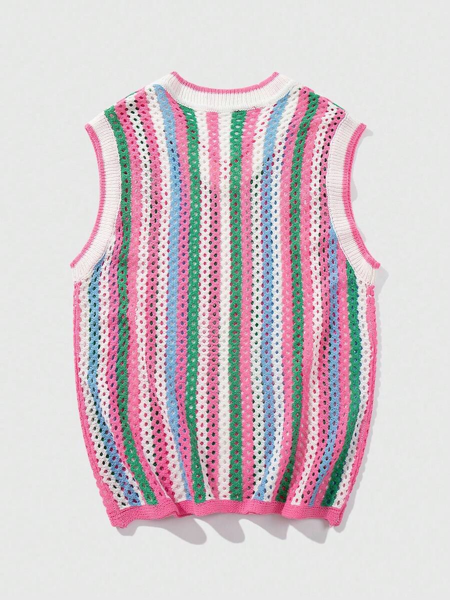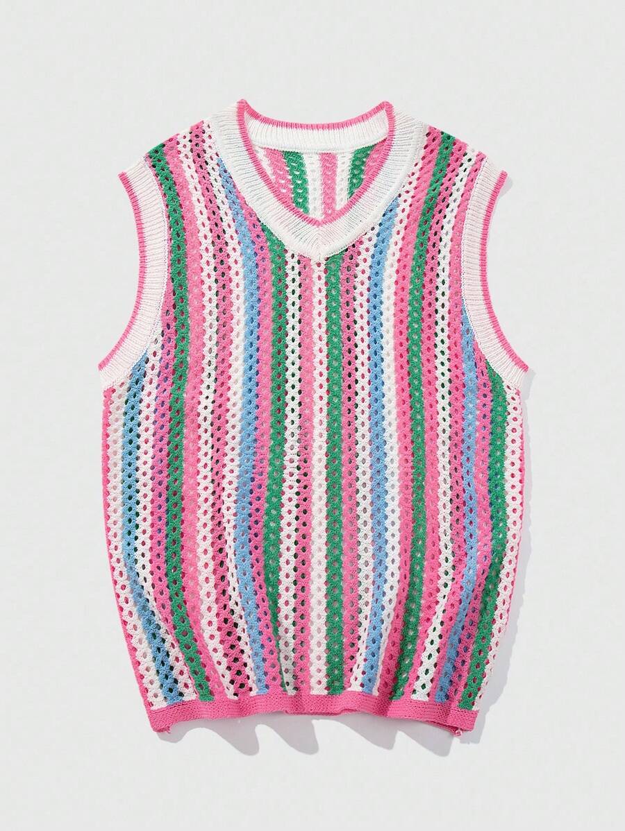 Street Life Men's Colorful Striped Pattern V-Neck Casual Knit Vest