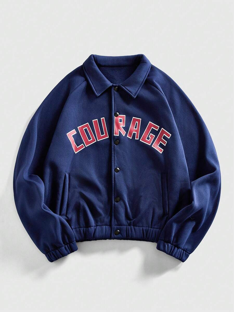 Prep Men's Contrast Color Letter Print Long Sleeve Jacket Coat