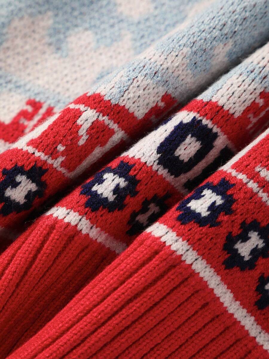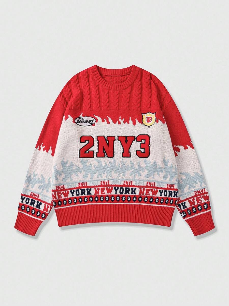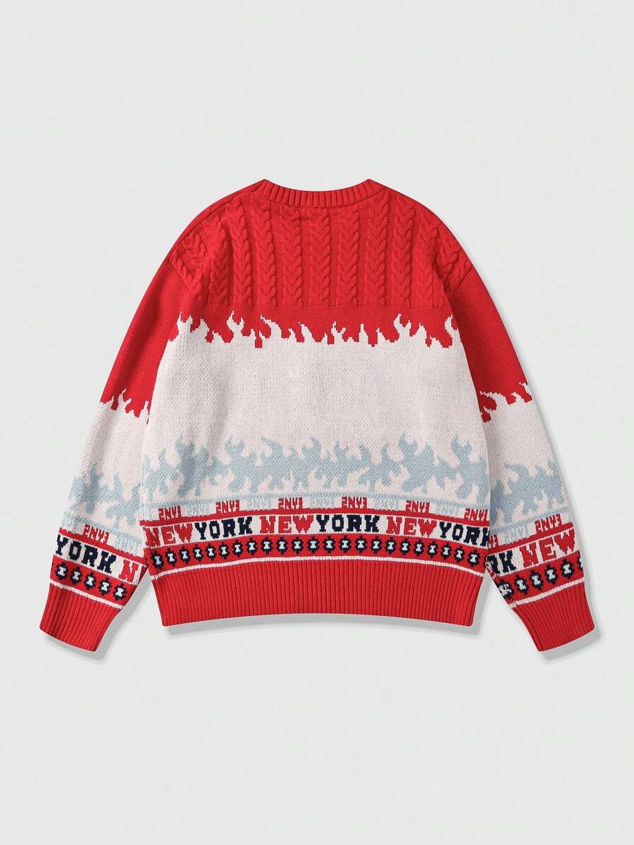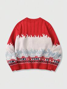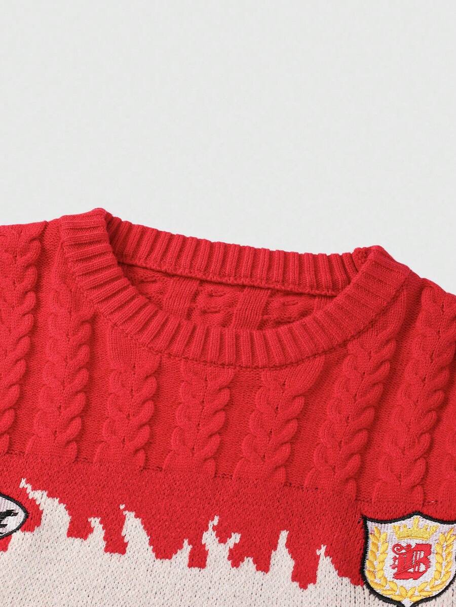 Prep Men's Contrast Color Patchwork Embroidered Sweater, Fall Winter