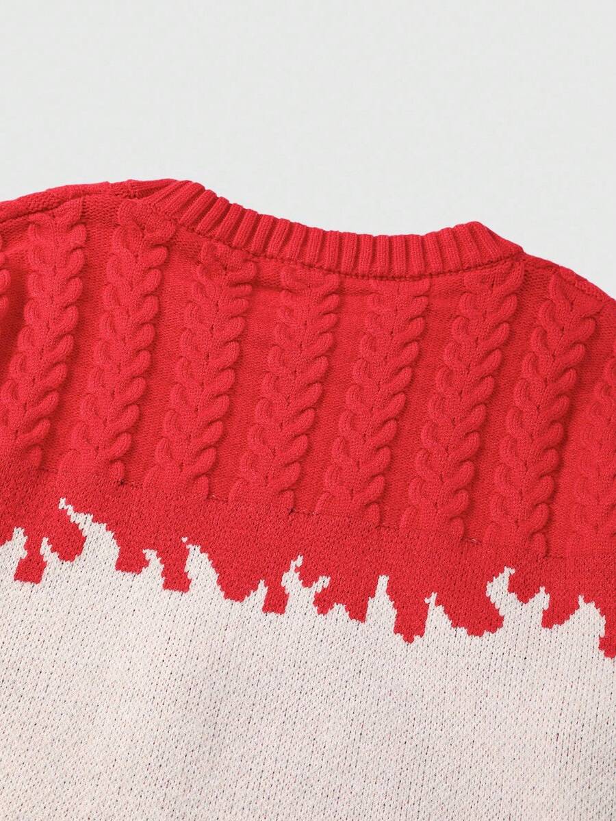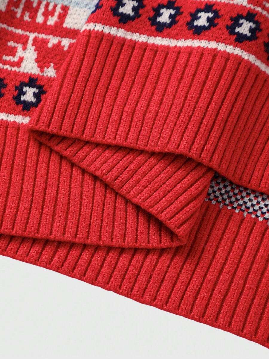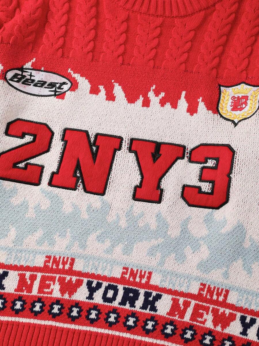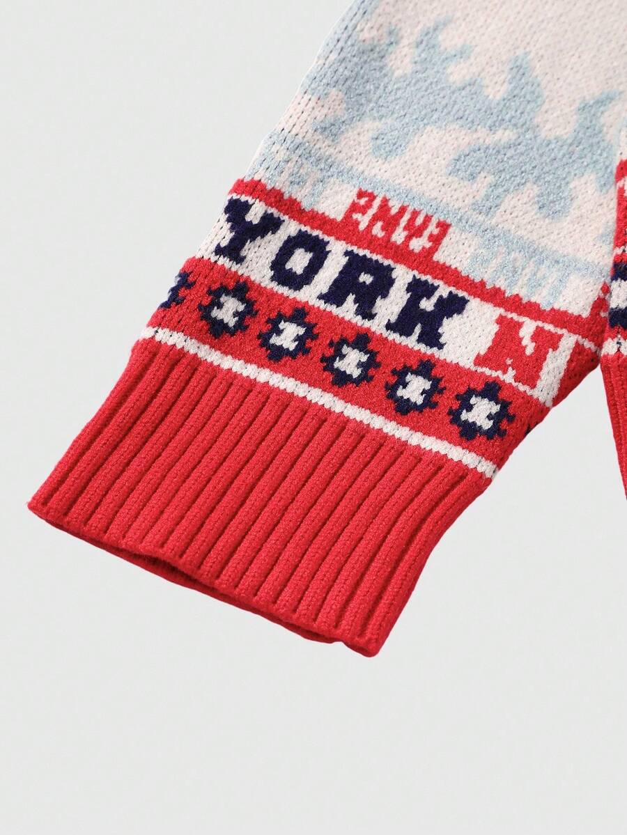Prep Men's Contrast Color Patchwork Embroidered Sweater, Fall Winter