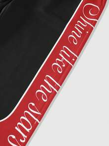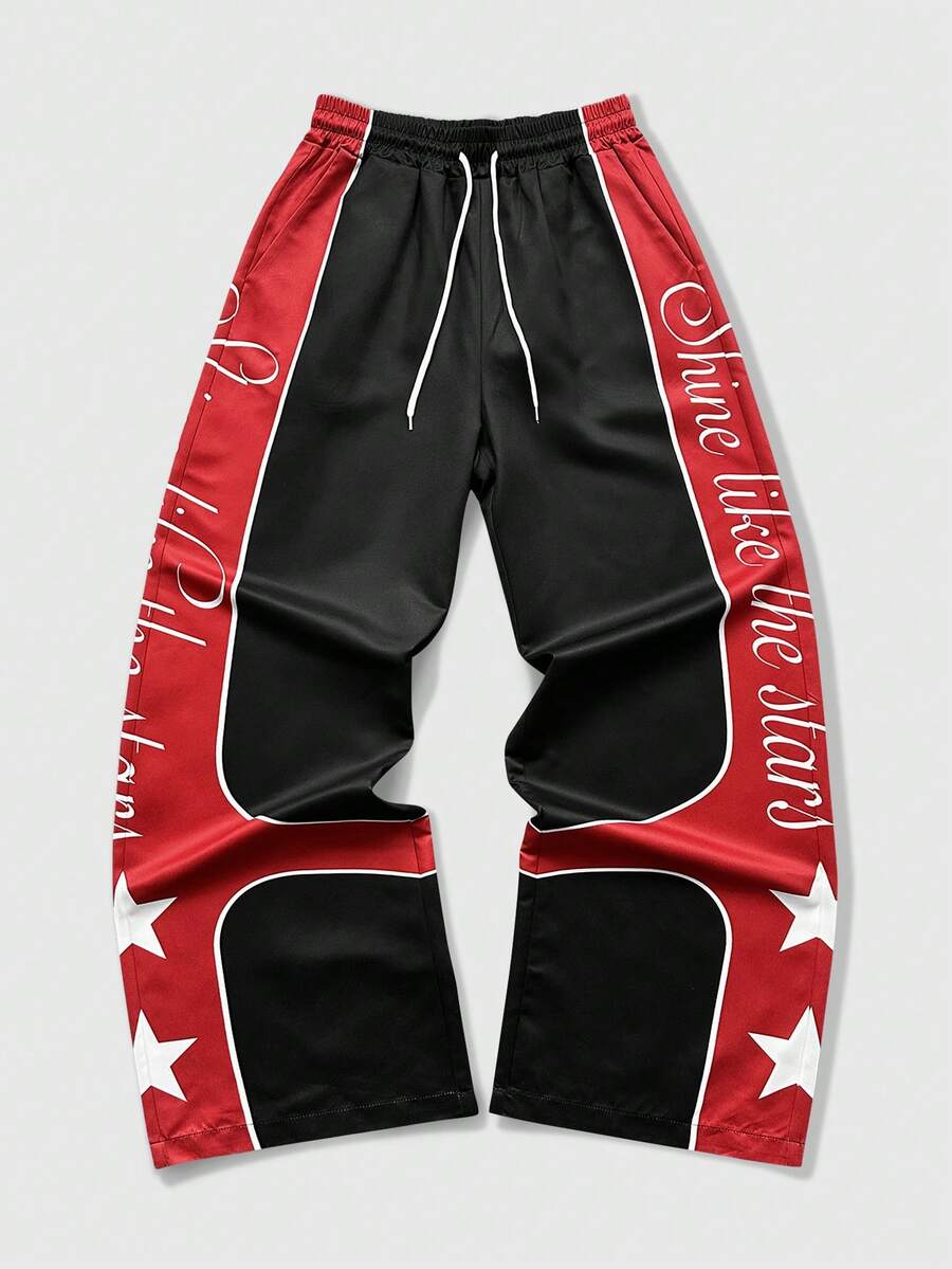 Street Life Men's Contrast Color Patchwork Letter Print Drawstring Waist Pants, Fall
