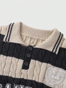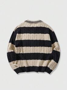 Street Life Men's Contrast Prep Color Jacquard Knit Sweater With Turndown Collar, Long Sleeve, Fall/Winter