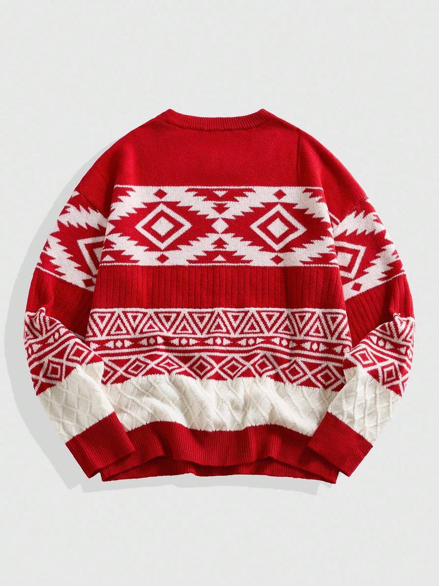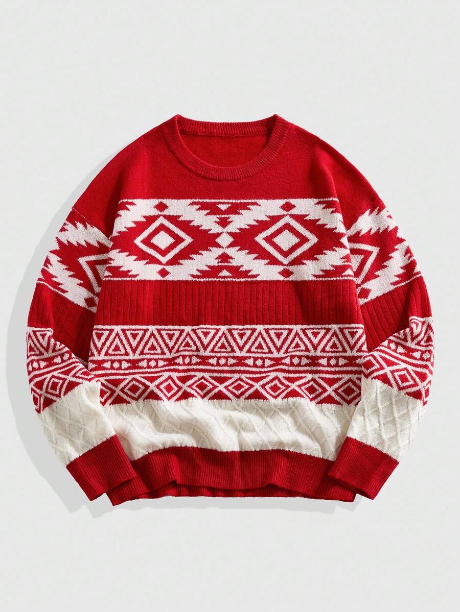 Street Life Men's Crew Neck Bohemian Christmas Casual Knit Sweater, Streetwear, Fall/Winter