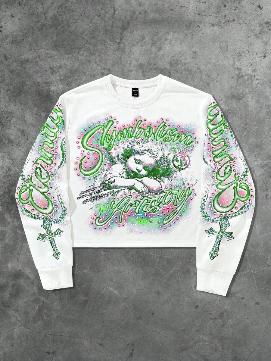 Street Life Men's Crew Neck Long Sleeve Creative Pattern Print Fashionable Streetwear Pullover Sweatshirt, Fall